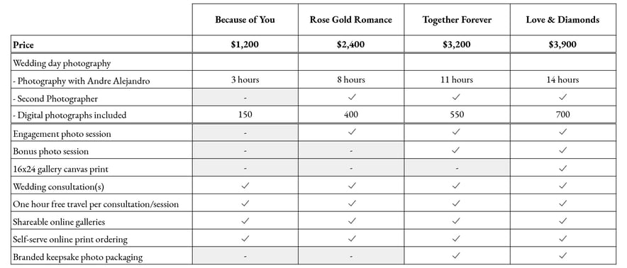 We have a package to fit your needs. If you need a custom package, reach out and we'll find the right bundle for your special day.